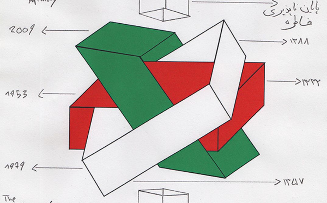 Chronicles from Majnun Until Layla is a film project structured in three phases. Each phase has its own format and mode of presentation. Stage #1 consists of architectural designs, models, maps and mockups regarding the Museum of Modern Iranian History. Historical chronologies of this fictitious but possible museum are based on a third-grade Iranian high school textbook entitled Contemporary History of Iran (published by the Education Ministry of I.R. Iran). On the other hand, the architectural system of the building is inspired by the style of Persian miniature paintings. Stage #2 of Chronicles from Majnun until Layla fleshes out the literary and imaginary personae of the film’s characters Layla and Majnun: identities adapted from various classical and popular Middle Eastern love tales. These initial two phases of the project act as models in that they prepare us for the actions, set designs, characters and the dramaturgy of the film. Stage #3, the film itself, will depict a man and woman (lovers) who visit the museum. In the film the lovers (the actors) will appear both as themselves and as Layla and Majnun. As they walk through the museum and interact with the museum’s representations of key moments in the history of Iran, the two lovers will engage in dialogues about stories, memories, rages, desires and dreams that they share both individually and collectively, in reality and in fiction. At the Forum Expanded exhibition Azin Feizabadi presents Chronicles from Majnun until Layla in the form of an interactive installation, merging together Stage 1: Museum of Modern Iranian History with Stage 2: Layla and Majnun. For this installative iteration of his project Azin Feizabadi also presents a part of the film‘s dialogues spoken between Layla and Majnun based on his own autobiographical accounts.