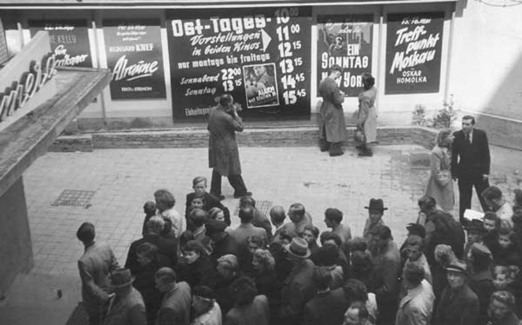 The film series, exhibition and website <LINK www.50jahremauerbau.de/rahmenprogramme/flimmern-auf-dem-eisernen-vorhang/>"Flicks at the Iron Curtain – Berlin Border Cinemas 1950–1961"</LINK> reconstructs the story of the West Berlin border cinemas. Potsdamer Platz played an essential role in the creation of the border cinemas. American film officer Oscar Martay and Berlin cinema operator Friedrich Wilhelm Foss, who ran Camera, the only postwar cinema at Potsdamer Platz, initiated the scheme. The idea was to establish cinemas along the border between the sectors, offering discounted film screenings for East Berliners. The idea was to communicate the values of the "free world" at the height of the Cold War by means of Allied film productions. The films shown at the around 30 border cinemas were received enthusiastically by the inhabitants of East Berlin. There were often heated discussions about the quality of the films being shown there however, with westerns and crime thrillers often receiving particular criticism due to their appeal for young audiences. The film series explores different aspects of the border cinemas.