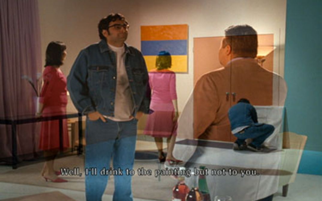 "Working in 35mm, Snow wrote and staged a three minute scene in which an artist delivers a painting to his lover's apartment, where he is confronted by her jealous husband. This ultimately violent scene is repeated 12 times, folded over: The second half of the 'narrative' is superimposed over the first half." J. Hoberman