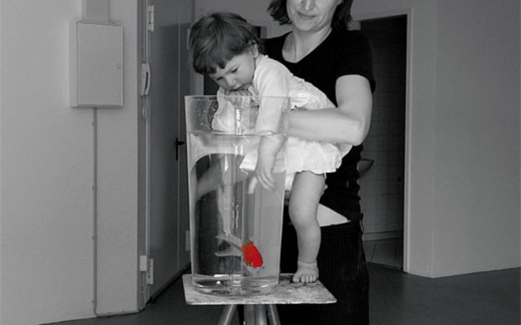 In pêche, she refers to an early film of the Lumierès, La Pêche Aux Poissons Rouges, and uses this reference to question the authenticity of the moving image.