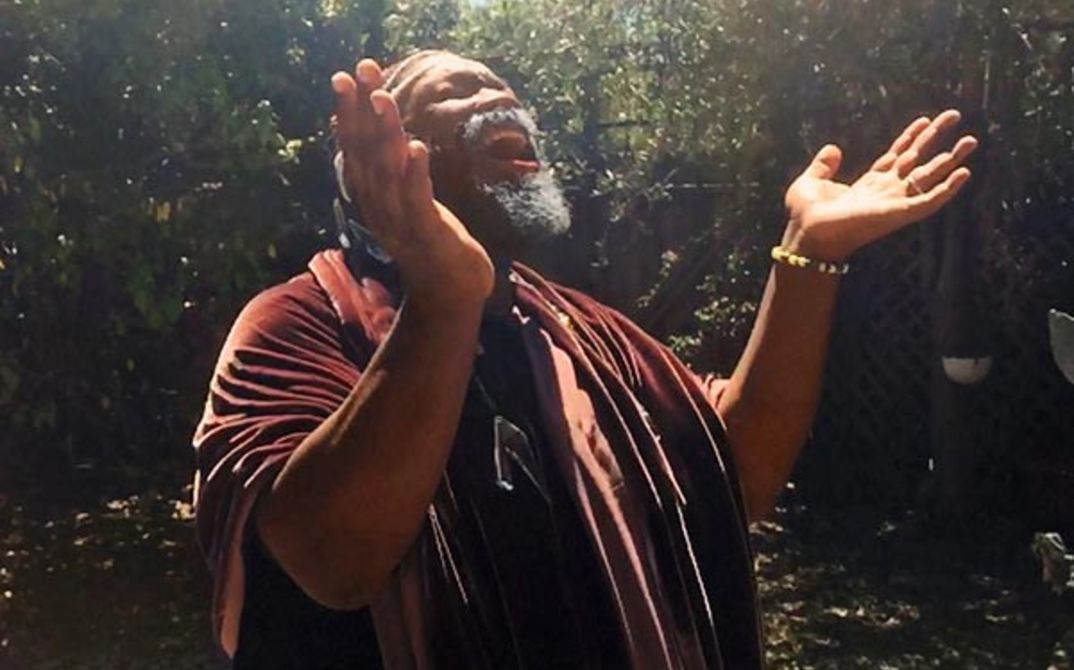 Girl Talk features poet and critical theorist Fred Moten dancing in slow motion, or ‘dragged time,’ to an a cappella rendition of Betty Carter’s jazz standard “Girl Talk,” here reinterpreted and performed by musician Josiah Wise. Wearing a velvet cloak covered in jewels, Moten turns euphorically in a sunlit garden as the crystals adorning his body refract pink, blue, and green rays.
