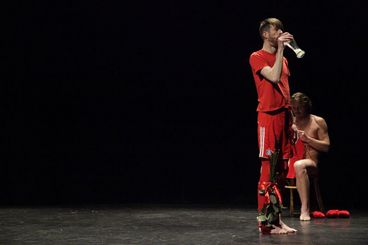 Der Abend mit Arbeiten von Ian White und Johannes Paul Raether widmete sich dem widersprüchlichen Verhältnis von Live-Performance und bewegtem Bild. Fragen nach der filmischen Konservierbarkeit eines Live-Momentes, die Übertragung einer performativen Handlung aus der Vergangenheit in die Gegenwart, oder die Überlagerung von bewegtem Bild und Live-Performance interessieren KünstlerInnen als FilmemacherInnen sowie als PerformerInnen. Aus dem Kontext von Künstlerfilmen aus der Sammlung des Arsenal entstanden zwei Arbeiten, die den Theaterraum des HAU 1 entlang der Orte Proszenium, Zuschauerraum und Bühne mit performativen Eingriffen bespielten.