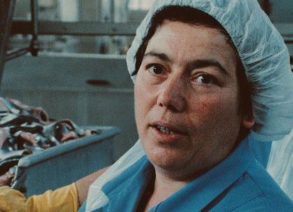 “The vegetables come from the garden behind the house, the fish comes out of a can, and money for bread is earned at the factory. It’s because of this money that they came here. Women from Turkey stand side-by-side with women form Mecklenburg at the conveyor belt of a fish-processing factory in Lübeck. Their hands are stained brown, the pungent smell of fish clings to them, and their arms and backs ache. If these jobs were done by men, machines would have been invented long ago to replace them.” (Linde Fröhlich) The film observes the women at work. In the process, they talk about their lives, their sorrows, their grief, their hopes and dreams, describe the longing for home and the sense of being lost in a place foreign to them (press kit PDF, German only).