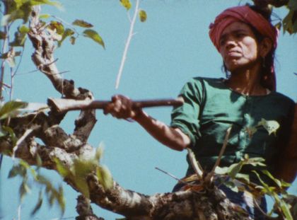 From 1981 through 1983 Yugantar, India’s first feminist film collective, developed four projects together with existing or ensuing women’s groups around the country. These included films with domestic workers in Pune (MOLKARIN, 1981), with women factory workers in Nipani (TAMBAKU CHAAKILA OOB ALI), with Sri Shakhti Sanghatana, a feminist research and activist collective in Hyderabad (IDHI KATHA MATRAMENA [Is This Just a Story?], 1983), and with members of the Chipko environmental movement (SUDESHA). Rich synergies between their activist and creative practices mark Yugantar’s films as a potent chapter of feminist filmmaking, inspiring reflections on political friendship and other modes of contemporary co-existence. Following a screening of TAMBAKU CHAAKILA OOB ALI and the premiere of their recently digitally restored film SUDESHA, Yugantar members Abha Bhaiya and Deepa Dhanraj will participate in a discussion with scholar and curator Nicole Wolf.