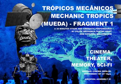 7. MECHANIC TROPICS (MUEDA), the fragment we will present, is a reflection about the repeti-tion of gestures, of personal and cultural memories, and the projections of the Future as a desire for freedom but also as a cultural and historical prison. The performance fragment proposes the friction between these two gestures: the fabled invention of a futurism full of self-doubt, and the memory of a film whose realistic portrait is already the reminiscence of a film that has never been seen in its full and original version. Actors and actresses, on stage or in pre-recorded images, simulate, emu-late, imitate and imagine the possibility of fraying the silvery reality of a film pointing to everything it does not show yet. The future, here, does not come from the news, but from the mechanical and repetitive reconstruction of gestures, voices and words – images that can intuit that there is much more future than memory in each revisited image. In every archive rediscovered.