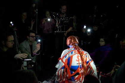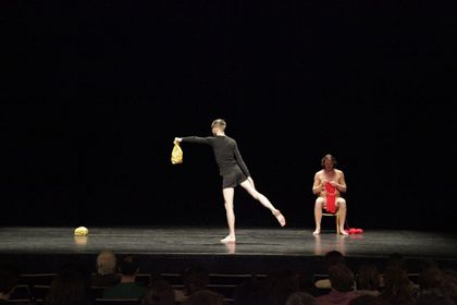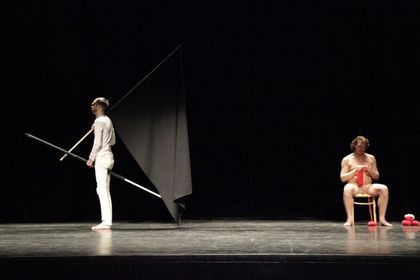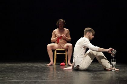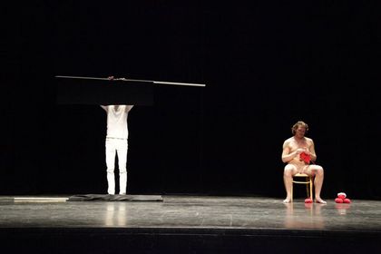 Two works by Ian White and Johannes Paul Raether explored the relationship between live performance and the moving image. Drawed from the collection of artists' films at Arsenal the two performances dissected the theatre space along its proscenium arch, between the auditorium and the stage, performance and production.