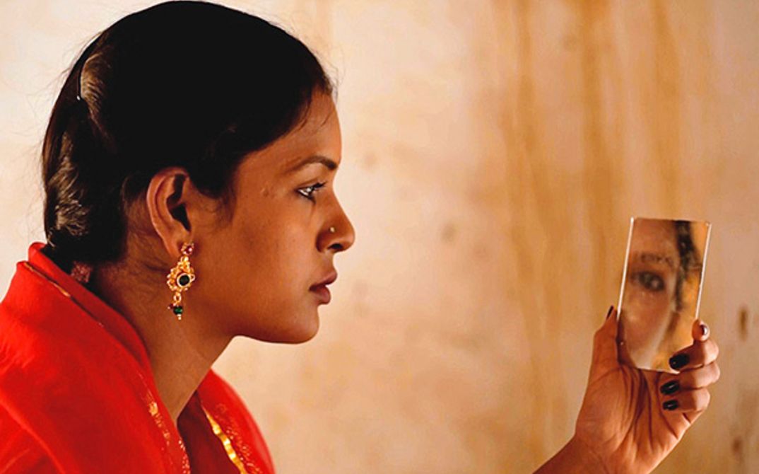 The light in the Thar Desert in Rajasthan makes the saris worn by the women on their way to the well appear even brighter than they already are. In this almost archaic seeming procession, Lajwanti remains hidden from sight behind her veil, until a man with an odd obsession for pigeons crosses the women's path. Lajwanti's curiosity is aroused, as she removes her veil and steps out of her invisibility. She becomes a woman of her own free will, no longer waiting fearfully to see if happiness will find her.