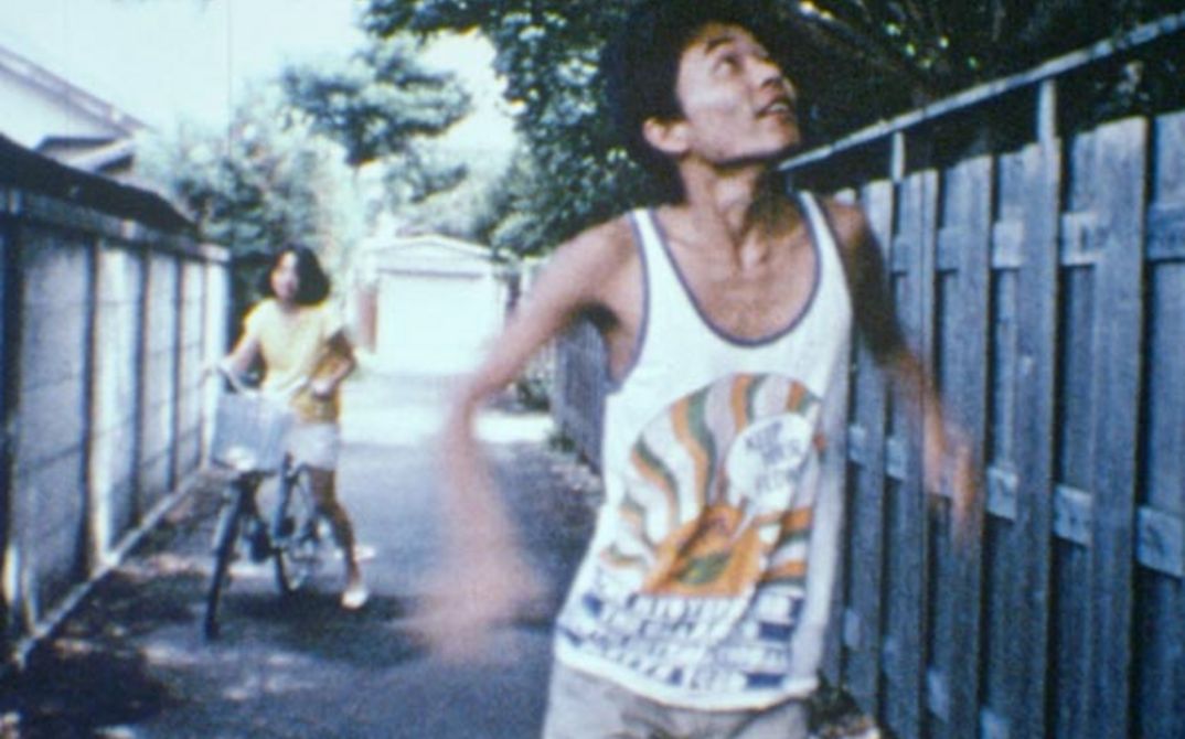 The brilliant opening of Sion Sono's first feature shows him dressed in nothing but a red rain cape running in hysterical fashion from a group of henchmen dressed in white coats, as the distorted soundtrack booms in the background. After escaping his pursuers momentarily, he takes a shit in a park before being picked up by the mythical "Kappa" water creatures in the historical canals of Tokyo.