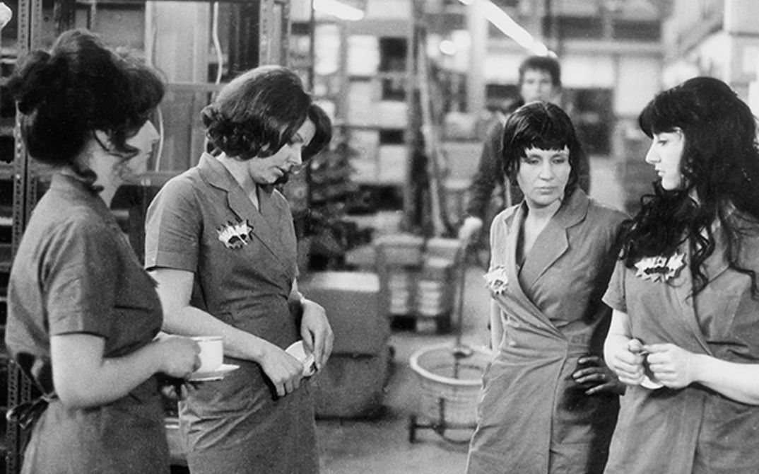 The film’s factory scenes show the development of women who do name what oppresses them, but in a manner that is cheerful and without consequences. Through Irene’s reflections, the women’s discussions about the class enemy lose their non-binding character and become more than mere griping. Irene gains her clearer consciousness because, on the one hand, as a single mother of two she suffers more exploitation and has less opportunity to conceal it from herself, and on the other hand, being single gives her the advantage of developing independence and self-confidence. Irene gradually learns to ask who benefits and who is damaged by every situation.