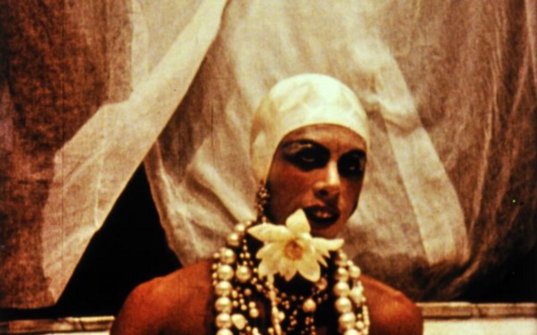 NORMAL LOVE (Jack Smith, USA 1963, 21.6.) Beads and pearls, sparklers, incense sticks, the portrait of a Hollywood goddess –it is before this still life altar that underground superstar Mario Montez lies in a mermaid costume and begins, largely improvising, to interact with the objects –the start of an exuberant performance fantasy extravaganza in a rural setting, in which Angus MacLise, Beverly Grant, Francis Francine, Tony Conrad, Tiny Tim, John Vaccaro, Diane Di Prima and Andy Warhol played a part. The never completed, but now restored work, can also be seen as an opulent "costume epic", full of jeweled robes, lace and brightly-colored ribbons - a visionary appropriation of, homage to and evocation of excess.