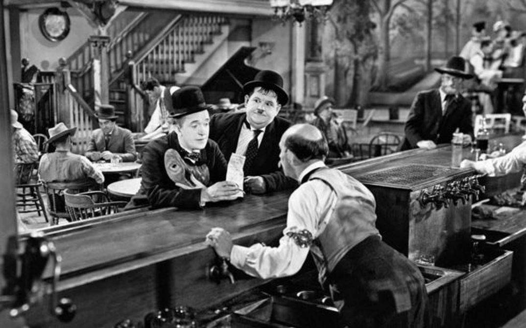 WAY OUT WEST (James W. Horne, USA 1937). The one-horse town in which Stan Laurel and Oliver Hardy have to track down the daughter of a gold magnate is located in the deep Wild West. The two have a valuable document in their luggage - the official confirmation that the daughter is the sole heir. With its wealth of fast-paced gags and perfectly timed slapstick numbers, this is a wonderful parody of the Western, which features many of the genre's conventions, such as trigger-happy cowboys, an overcrowded stagecoach and a sandstorm. The traditional vast landscapes are replaced with a provincial crossroads and a water point, which hides its own dangers and depths. Stan Laurel and Oliver Hardy often said later that WAY OUT WEST was their favorite film. Their interpretation of "The Trail of the Lonesome Pine" is one of the most famous scenes in their filmography. (5.2)