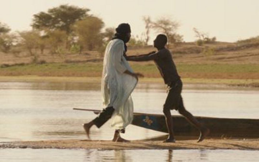 TIMBUKTU (Abderrahmane Sissako, Mauritania/France 2014, 6. & 10.1.) A group of youths in colorful, fluttering jerseys runs around a sandy sports field. The seemingly cheerful scene quickly turns into its opposite as it becomes clear that the kids are playing soccer without a ball. The scene functions as both a marking of lunacy—Islamic groups have occupied the mythical city of Timbuktu and forbidden the playing of soccer, among other things—and as a poetic choreography of rebellion, of resistance, of the imagination. In other parts of the city, similar small gestures of resistance on the part of the populace agitate against the rebels’ strict fundamentalist rules.