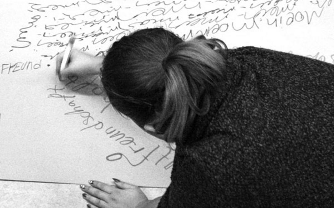 Language, sound, type, live scoring: starting with two words from their mother tongues and from German—which they either recently learned or will soon learn—pupils from a "welcoming class" at the Albert Gutzmann School were guided by the artists Eunice Martins, Laura Mello, Heidrun Schramm and Nicolas Wiese to design their own typefaces, based on their handwriting. Then, using stop-motion techniques, they put the typeface in motion and added a score to the brief film using spoken sound pieces. In a multimedia spoken word performance and accompanying exhibition in the Rote Foyer, on 11.1 these schoolchildren will present the results of their work at the Arsenal. (em)