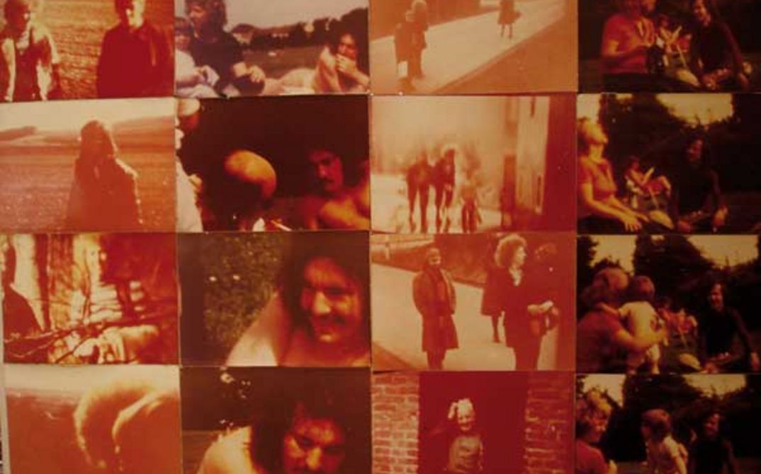 Four panels show 380 color photos. They were taken while projecting super8 films that were made as home movies during 1971-1973. After 35 years, the photos have taken on new meanings that they never could have had at the time. They have become historical documents of the international community of filmmakers that have in the meantime become famous as the pioneers of experimental film.