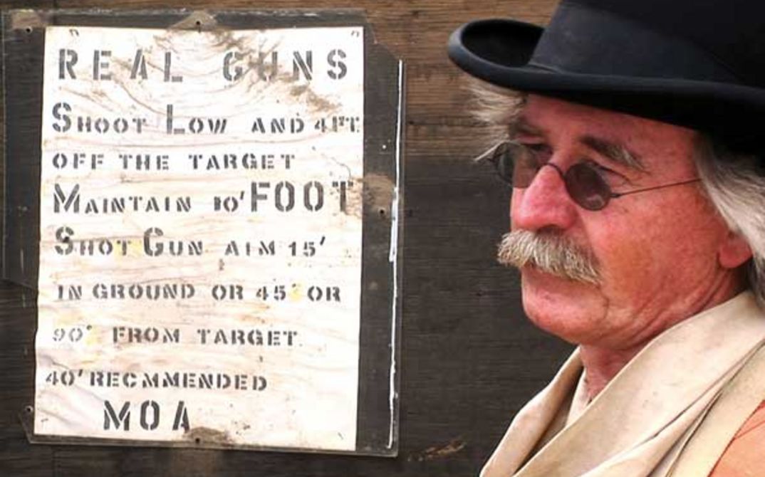 Yippie Yi Yo Kayah was filmed on location in Pioneertown, a decrepit Californian desert artefact from Hollywood's cowboy golden era of Roy Rogers and the Cisco Kid. The film explores the melancholy and amateurism of a group of Old West re-enactors in which Pickering invites them to perform a repeated shootout. The work observes their back-stage preparations and wooly rehearsals prior to enacting their instructed script.