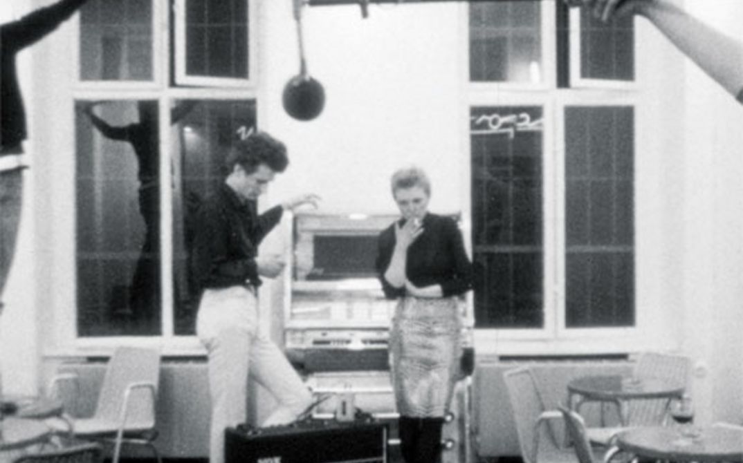 Flight Through the Night is one of the most impressive examples of the newly oriented young West Berlin cinema of the time. The protagonists, Gretel Kemeny and Martin Peter (…) initially appear as a duet in the Schöneberg café Mitropa, one of the in-spots of the new wave and post-punk scenes of the time, but there are no patrons there. The film neither seeks to conceal that it was shot at night, outside of regular hours, nor does it try to fictionalize a typical bar atmosphere. The café, flooded with cold film lighting, seems as laconically alienated as the single line of text that Kemeny sings to Peter’s clanging electric guitar: “For they know what they do!” And even if both actors vary hackneyed fragments of dialogue in later stations in the film–in bed, on the roof, in the kitchen, the balustrade, the porter’s office–in doing so they are not concerned with any kind of goal, not even the epos of an odyssey. Certain individual motifs may be reminiscent of classics from film history (for instance, of the gangster couple “Bonny and Clyde”) and once in a while the film seems like an existential musical. But Flug durch die Nacht is neither an attempt to re-stage a mythos nor to crystallize a portrait of the times. This is particularly striking when the director’s voice gets involved in the scene from off screen. For instance she speaks out loud to make sure that the sound technician is getting the recording, even though Kemeny/Peter are only trying to figure out how to play their parts. Or when Baltrusch expressly insists that the camera keep rolling, even if the two aren’t saying anything at the time and don’t particularly know what to do. “Fuck how expensive the film is!” – It would be easy to see such gestures as an ironic reflection on the affluent society of late West Berlin, so marked by subventions and prosperity, the few fragments of dialogue given in the script– “It’s an enormous threat to the city” ... “Death is so persistently courting me that I can’t hold out much longer.” – as marked by the scenarios of deterrence that formed the city’s contours. Instead Baltrusch alters her presentation of the visitors, here floating spookily between the private and the public, so that the film practically delivers a paradigm for the deconstructed – also by the Cold War – rendezvous and style politics of this period.