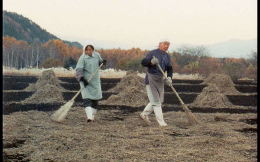 Filmed from a fixed camera angle in just one shot Nō shows two farmers working in the fields and how they change the landscape, giving it a new face, in what seems like a choreographed routine.