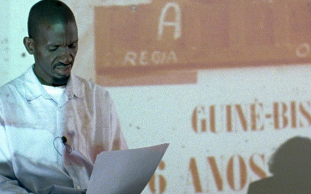 CUBA is a film essay based on Filipa César’s research on Guinea-Bissau’s recently digitized film archive. A sole tracking shot unfolds a lecture presented by the Guinean filmmaker and régulo, Suleimane Biai, the Portuguese-Spanish performer Joana Barrios, and the Guinean actor and director of Bissau’s Film Institute (INCA), Carlos Vaz. The film proposes a path from Amílcar Cabral’s experience as an agronomist researching the soil of the Portuguese village Cuba through his engagement as a leader of the Guinean liberation movement and encourager of the birth of Guinean militant filmmaking influenced and supported by Cuba.