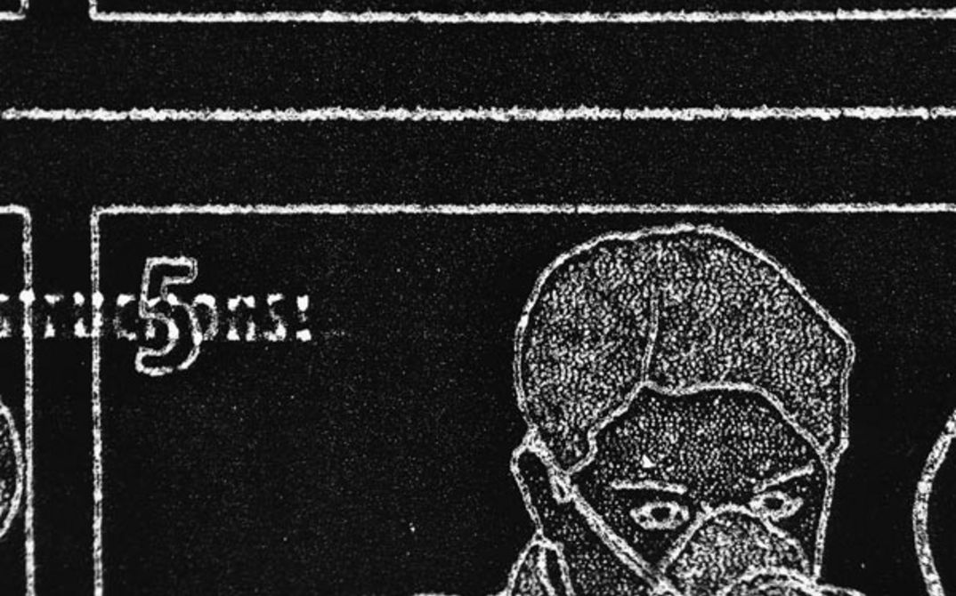 A “camera-less lettrist film” about fear of flying, security checks, and time zones, Mannerlaatta uses photogram techniques and photocopying to produce its images, exposing objects placed on 35mm reversal film and printing documents related to air travel directly onto clear film leader. The result is an almost body-less film quality, aesthetically channeling the self-referential inner monologue of the protagonist, caught in a maelstrom of thoughts and images.
