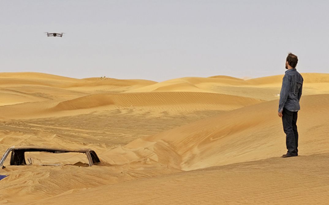 Whether they inhabit the desert or are lost in it, three men are clearly confronted with the ruins of modern times. They are explorers of times past or players/performers in an existing architectural site. Their encounters, their moves, their assessment of location take the form of an acoustic sounding of space. Al-Houbut takes place in Shaabiyat al Ghurayfah, a public housing project in Sharjah, United Arab Emirates built in the eighties to provide descendants of the Ketbi Bedouins with their first concrete homes. This site, now totally deserted, witnessed the first move of Bedouin families from tents into modern designed habitations.