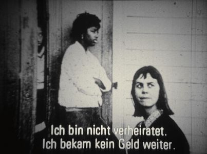 The films by the Newsreel collective, which was founded in New York in 1967 and was dedicated to producing and distributing politically engaged films, are still being maintained and distributed to this day. This meant it was possible to have a new 16mm print of The Woman’s Film made for the anniversary program, since the only subtitled print contained a problem. The joint poster design for this year’s Forum and Forum Expanded shows a scene from the film of a white woman speaking, including the accompanying subtitle: “Ich trat in Streik!” [“I went on strike!”]. At this point in the film though, she is speaking about the fact that people only get heard as a group, and not as individuals. The actual moment where the sentence is uttered appears shortly afterwards. It’s a black woman who says it, although her words are “We went on strike!” The I and the We are thus newly interwoven (in the film Eine Prämie für Irene (A Bonus for Irene) by Helke Sander, which was screened in the same programme, we hear in a protest song: “Irene is the many”). At the first year of the Forum, with resources still limited and experience in subtitling techniques lacking, translation mistakes were sometimes inscribed into the prints, creating new levels of meaning that in this case were shifted yet further by the asynchronicity of the subtitles.