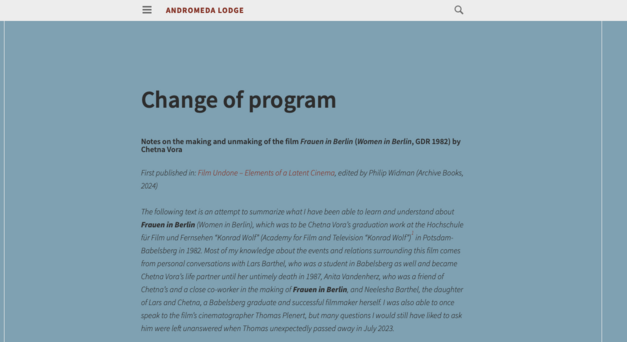 Chetna Vora was born in Gujarat, India in 1958. She studied directing at the Hochschule für Film und Fernsehen Potsdam-Babelsberg from 1976 to 1982. After her documentary exam film OYOYO (1980), she submitted FRAUEN IN BERLIN as her graduation film in 1981. In 1983, she moved back to India together with her partner, filmmaker Lars Barthel, and their daughter Neelesha Barthel. Chetna Vora died in 1987.