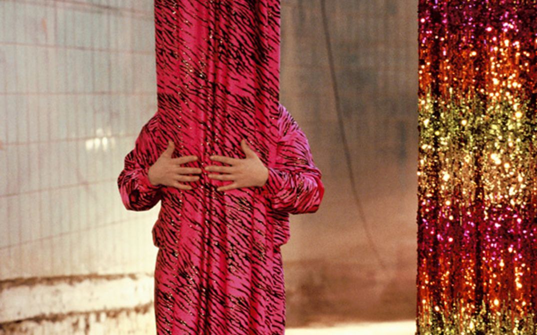 In einem leeren und verlassenen Schwimmbad sehen wir zwei Performer, deren Geschlecht und Herkunft unbekannt bleiben. In einer bestimmten Szene rezitieren die beiden einen Text von Jean Genet über den „erklärten Feind“ und verkörpern in der Re-Inszenierung einer Filmszene Teile einer politischen Untergrund-Organisation der 1970er. Die Requisiten, die sie benutzen, erinnern dabei an Friedensproteste und stehen im Kontrast zum Szenario ihrer Drag-Performance. Indem sie Schleier, Vorhänge, Camouflage und Rauch benutzen, scheinen die Performer das einzufordern, was Edouard Glissant einmal als „das Recht auf Opazität“ beschrieben hat: Wenn Aneignung durch Wissen stattfindet, wird eine Sache enthüllt, entschleiert und aufgedeckt. Die Forderung nach Opazität kann eine Strategie bedeuten mit Hilfe derer wir Informationen über unsere politische Arbeit, unsere Herkunft, über den Zustand unserer Körper oder über unsere Sexualität verweigern.
