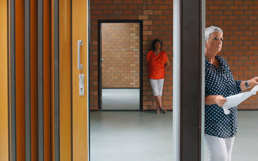 Beauty and the Right to the Ugly ist ein filmisches Experiment, das in Het Karregat, einem stillgelegten Gemeindezentrum in Eindhovendas in den Niederlanden angesiedelt ist. Het Karregat, von Architekt Frank van Klingeren entworfen und 1974 fertiggestellt, liegt inmitten eines Neubaugebietes und sollte verschiedene Formen des gemeinschaftlichen Wohnens miteinander versöhnen. Das Design sah einen großen offenen Raum vor, der verschiedene Einrichtungen und Aktivitätszentren unter einem Überbau vereinen sollten – eine Bücherei, eine Schule, ein Café, ein Gesundheitszentrum, einen Supermarkt und einen Gemeinschaftsbereich. Wendelien van Oldenborgh untersucht das Werden – und das teilweise Scheitern- dieser utopischen Architektur, während dabei im Prozess ihrer Arbeit die filmische Methode erst konzipiert wird und dann zur Anwendung kommt: damit sollen die architektonischen Voraussetzungen des Gemeindezentrums (’offen‘, ‚verbraucherorientiert‘, ‚partizipativ‘) in filmische Mittel übersetzt werden. Mit dieser Arbeit verfolgt van Oldenborgh ein weiteres Mal ihr Interesse an Film als performativem Mittel sowie ihre kontinuierliche Beschäftigung mit Fragen der Kollektivität, ihren Berührungspunkten mit dem Privaten, und der Rolle, die kulturelle Produktion darin spielt.