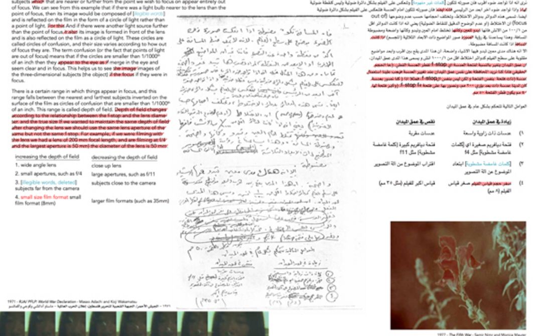 Im Anschluss an ihre Präsentationen im Rahmen von Archival Constellations im letzten Jahr, lud Subversive Film das Mosireen-Kollektiv zu einem Gespräch über zwei separate revolutionäre Zeiträume ein. Darin ging es um die Vermittlungsstrategien, die in der Palästinensischen Revolution (1968–82) und der Ägyptischen Revolution von 2011 für die Filmausbildung entwickelt wurden. Das Gespräch wurde als Beiblatt zu „The Syllabus“ veröffentlicht, einem Publikationsprojekt von Subversive Film, in dessen Zentrum ein unveröffentlichtes Manuskript für ein Kameralehrbuch des palästinensischen Kameramanns und Revolutionärs Hani Joharieh aus den 1970er-Jahren steht. 2011 hatte Mosireen während der ägyptischen Revolution einen Lehrplan für Filmproduktion und Street Media entwickelt, der unmittelbar Anwendung fand.