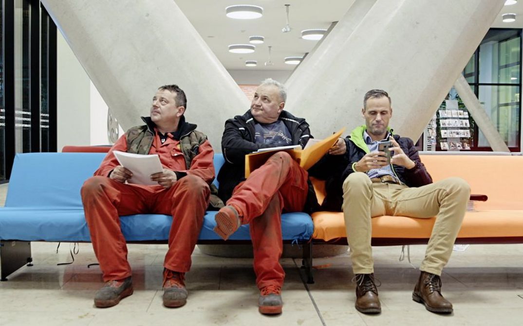 Die rote Faust im Foyer markiert die Arbeiterkammer Wien als historische Errungenschaft der Arbeiterbewegung. Dass sich die Idee einer gesetzlichen Interessenvertretung für Arbeitnehmer*innen in der postmigrantisch und pandemisch geprägten digitalen Gegenwart nicht überlebt hat, zeigt die Nachfrage: Am Empfang herrscht reger Betrieb. Die Klientel ist divers, der Zugang niedrigschwellig, das Angebot vielfältig, der Umgang freundlich, die Haltung engagiert. Im Stil einer teilnehmenden Beobachtung gibt FÜR DIE VIELEN dramaturgisch klug montierte Einblicke in die tägliche Praxis der Institution, von Beratungsgesprächen zum Arbeitsrecht, über Teamsitzungen und kulturelle Veranstaltungen hin zur Präsentation von wirtschaftswissenschaftlichen Analysen zur Vermögensverteilung. Der Begriff Sozialstaat wird hier so anschaulich, wie das Bild einer Gesellschaft entsteht, in der soziale Diskriminierungen üblich sind. Als die Kampagne zum 100-jährigen Bestehen der AK im Jahr 2020 mit dem Ausbruch der Coronapandemie kollidiert, wird die interne Organisation des Krisenmodus zentral – und es zeichnen sich ganz neue Herausforderungen für die Welt der Arbeit ab. Die Idee muss weiterleben, #fürimmer. (Birgit Kohler)