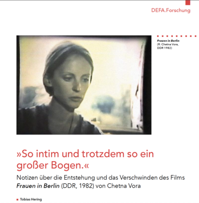 Nachdem Chetna Vora den Film mit Petra Heymann geschnitten hatte, musste sie ihn bei einer Vorführung in der Schule präsentieren. Es war wahrscheinlich das einzige Mal, dass FRAUEN IN BERLIN in der von Chetna beabsichtigten Länge und Form von einem Publikum gesehen wurde. Von dieser Vorführung gibt es einen Augenzeugenbericht von Christiane Mückenberger, die Chetna Voras Professorin für Filmgeschichte in Babelsberg war. 1993 wurde sie von der Filmemacherin Tamara Trampe im Rahmen eines Forschungsprojekts interviewt, das Trampe während der Auflösung der DDR-Filminstitutionen in den frühen 1990er-Jahren begonnen hatte. Trampes allgemeine Absicht war, Erinnerungsprotokolle von Frauen ihrer Generation zu sammeln, die im DDR-Filmwesen gearbeitet hatten. Und die konkrete Motivation für ihr Gespräch mit Christiane Mückenberger war, »etwas über die Ereignisse rund um Chetna Voras Film Frauen in Berlin« zu erfahren.6