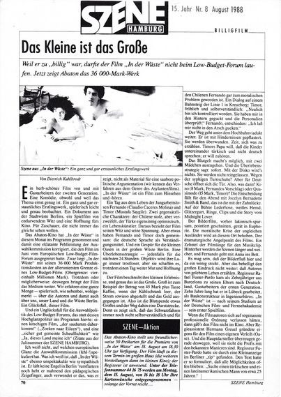 Besprechung von IN DER WÜSTE von Dietrich Kuhlbrodt aus „Szene Hamburg", August 1988