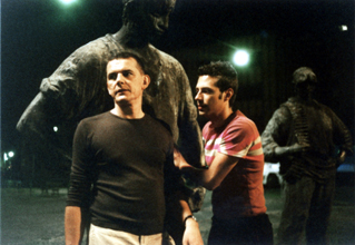 The railway station of a big Italian town. Nightfall. Some people are sending some mysterious SMS from their mobile phones. Marco takes his bicycle and slowly cycles home. In the meanwhile, Paolo is at home waiting for his boyfriend Luca to arrive for dinner. Marco gets home, but as soon as he opens the door, two shots kill him. Luca accidently gets in the killers way. The killer shoots him and he falls, seriously wounded. People run into the street. Among them is Paolo, whos completely upset, and his neighbour Francesca. She takes Paolo to the hospital where he argues with a doctor who cant tell him anything about Luca because Paolo isnt a real relative. Paolo learns accidentally from a journalist that Marco was an important politician in the government and Luca has just died... An atrocious political crime is the starting point of a reflection upon human implications of a sudden death: an unintentional and unexpected desertion. We are weakly hanging by the thread of life just like leaves that a little breath of wind could sweep away (B.M. Koltès). From the protagonists point of view, the wind sweeping away his love and upsetting his life coincides exactly with an act of violence that strongly affects the social and political life of the entire country. The hugeness of a terrorist attack (emphasised not just by a tragic murder, but also by a climax of tension in a nocturnal town continually disrupted by police sirens) redoubles and reverberates in a common mans heart; a man who loses the person with whom he shared his life. For a night, the focus of attention moves from a famous mans death to a common mans death that will soon be forgotten. Andrea Adriatico, geb. 1966 in LAquila. Seit 1989 als Theaterregisseur tätig. 1993 Gründung des Teatri di Vita, ein internationales Zentrum für darstellende Kunst in Bologna. Nach drei Kurzfilmen ist Il vento, di sera sein erster abendfüllender Film. |