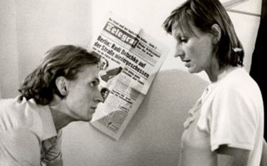 Margarethe von Trotta erzählt in DIE BLEIERNE ZEIT (1981) von zwei Schwestern, die sich um 1968 beide gesellschaftspolitisch engagieren und dabei grundsätzlich verschiedene Wege einschlagen. Juliane wählt als Journalistin in einer feministischen Zeitschrift den Weg der Aufklärung, Marianne wendet sich dem Terrorismus und damit der Gewalt zu. (14.11.)