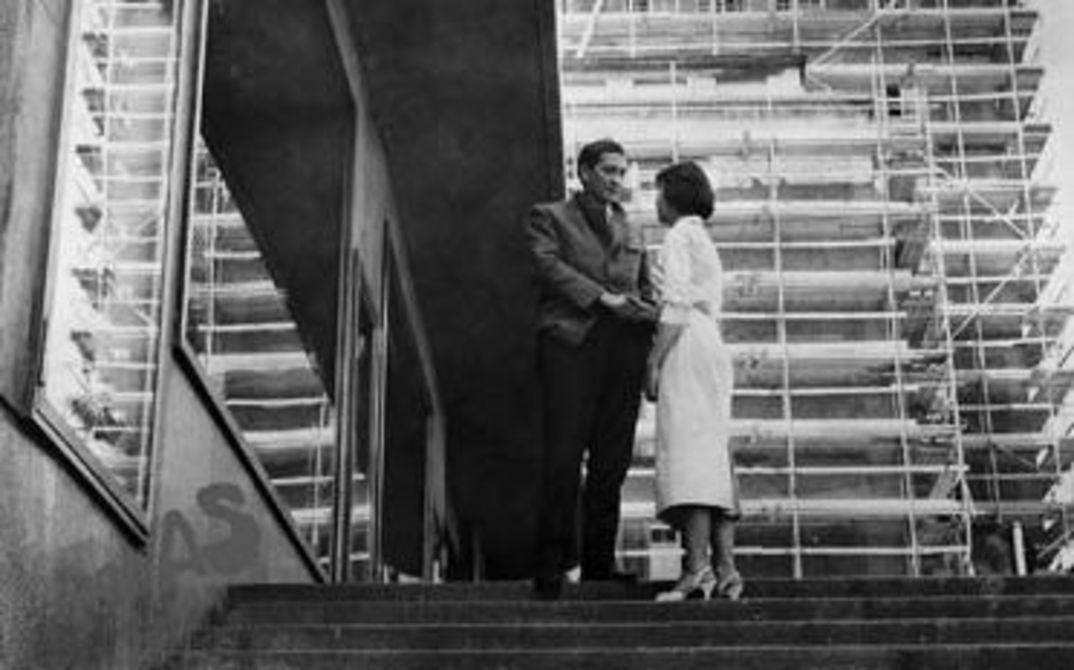 In DAS BROT DER FRÜHEN JAHRE (1962) inszeniert Herbert Vesely die Geschichte des jungen Elektromechanikers Walter Fendrich, der mit der Tochter seines Chefs verlobt und auf dem Weg zur gesicherten Existenz ist, jedoch unvermittelt aus seinem gewohnten Leben ausbricht, als er einer Jugendfreundin wiederbegegnet. Der teils am Rande des Hansaviertels gedrehte Film entwirft eine bemerkenswert künstlerische, aus verschiedenen Perspektiven und inneren Monologen zusammengesetzte Adaption der gleichnamigen Erzählung von Heinrich Böll. (14.6.)