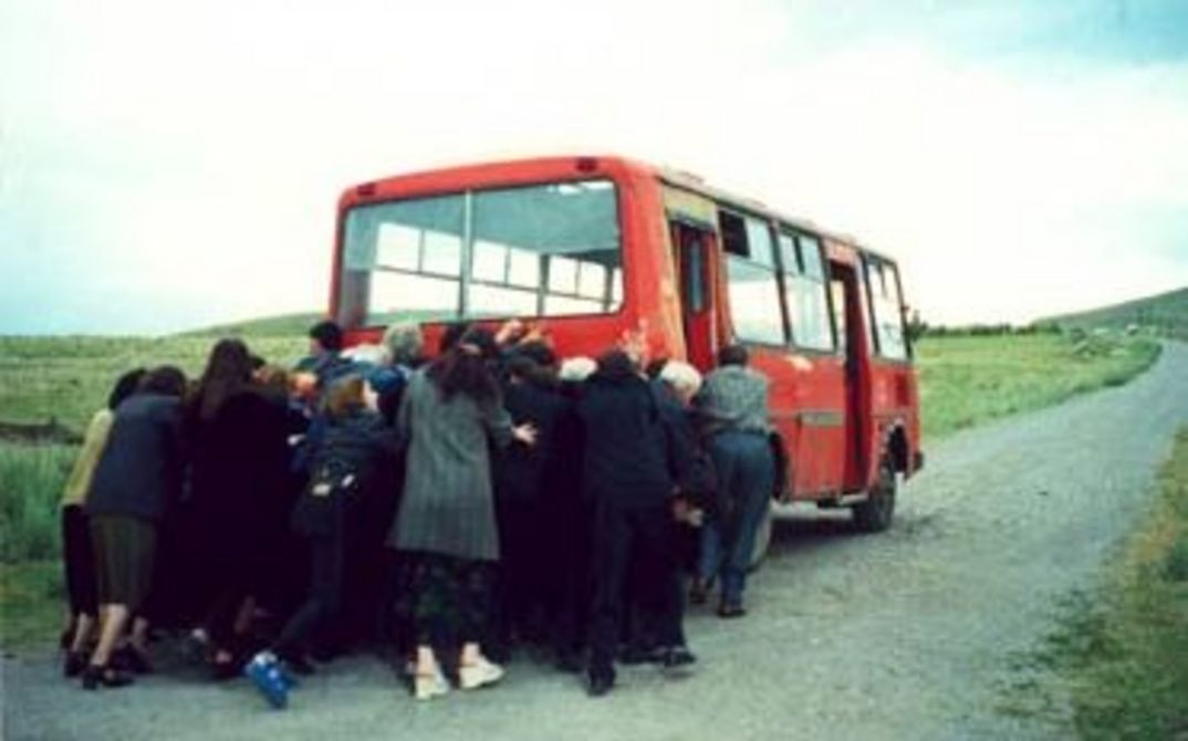 Auch der achtjährige Gagik in URAKH AVTOBUS (Ein fröhlicher Bus, 2000) von Albert Mkrtchyan ist plötzlich auf sich allein gestellt, als er bei einem schweren Erdbeben seine Familie verliert. Mit Nachdruck und Hartnäckigkeit sucht und findet er eine neue "Familie". (20.5., ab 10 Jahre)