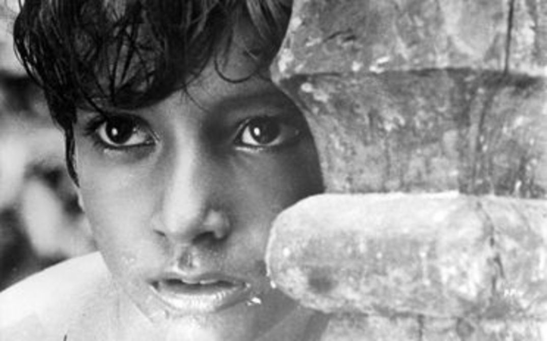 Szenen aus dem Leben einer indischen Familie: In einem bengalischen Dorf streift der kleine Apu zusammen mit seiner Schwester die Felder und entdeckt staunend das Wunder des vorbeifahrenden Zuges.
