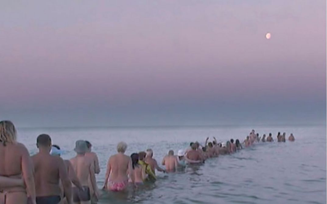 Wer lebt glücklich in Russland? Die Suche nach Sinn, Glück und Halt in der Gemeinschaft kann wunderliche Gestalt annehmen – so wenn eine große Gruppe erwachsener Menschen im Gänsemarsch ins Meer läuft, um dann mit seltsamen Bewegungen durch das Wasser zu hüpfen oder sich nächtlichen psychedelischen Theaterperformances hingibt. Die Bade- und Tanzrituale werden angeleitet von Boris Zolotov, zu Sowjetzeiten ein bekannter Physiker, der den Wissenschaftsbetrieb verließ, um seine kosmologischen Weisheiten zu verbreiten. Ohne ausdeuten oder entlarven zu wollen, stellt Kristina Paustian in ZAPLYV (D/RUS/HU 2015) dokumentarische Beobachtungen aus dem Alltag in der Kommune des Gurus im Süden Russlands neben Archivaufnahmen von Auftritten Zolotovs in einem überfüllten Auditorium oder bei einer TV-Show. Außerdem führt sie eine junge Frau als Protagonistin ein, die sich mit Zolotov über das Glück im heutigen Russland auseinandersetzt. (bik) (18.1.)