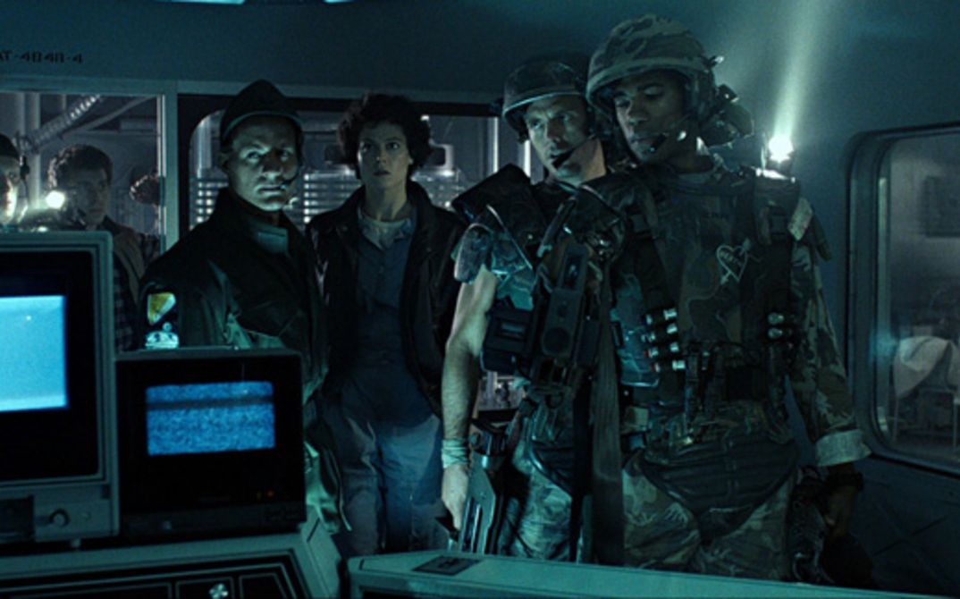 57 Jahre nachdem ein Alien die Besatzung des Raumschiffs Nostromo getötet hat, wird die einzige Überlebende, Offizier Ellen Ripley (Sigourney Weaver), in der Hyperschlaf-Kabine eines kleinen Rettungsschiffs in der Weite des Weltalls gefunden. Auf der Raumstation, wo man ihren Schilderungen der schrecklichen Ereignisse nicht glauben will, erfährt sie, dass der Planet LV-426, auf dem die Mannschaft der Nostromo auf die Alien-Eier gestoßen war, seit 20 Jahren für Kolonisationszwecke bewohnbar gemacht wird. Als einige Zeit später der Kontakt zu dieser Kolonie abreißt, wird ein Suchtrupp von Elite-Soldaten unter Ripleys Führung zum Planeten gesandt. Während der erste Teil der Tetralogie, Ridley Scotts Alien (GB/USA 1979), nach einer klassischen Horrorfilmdramaturgie funktionierte und von dunkelgrünen Farbtönen bestimmt war, verschob James Cameron im 2. Teil ALIENS (Aliens – Die Rückkehr, USA 1986) das Farbspektrum zu leuchtendem Blau und die Genreanteile in Richtung Actionfilm. (hjf) (1.10.)